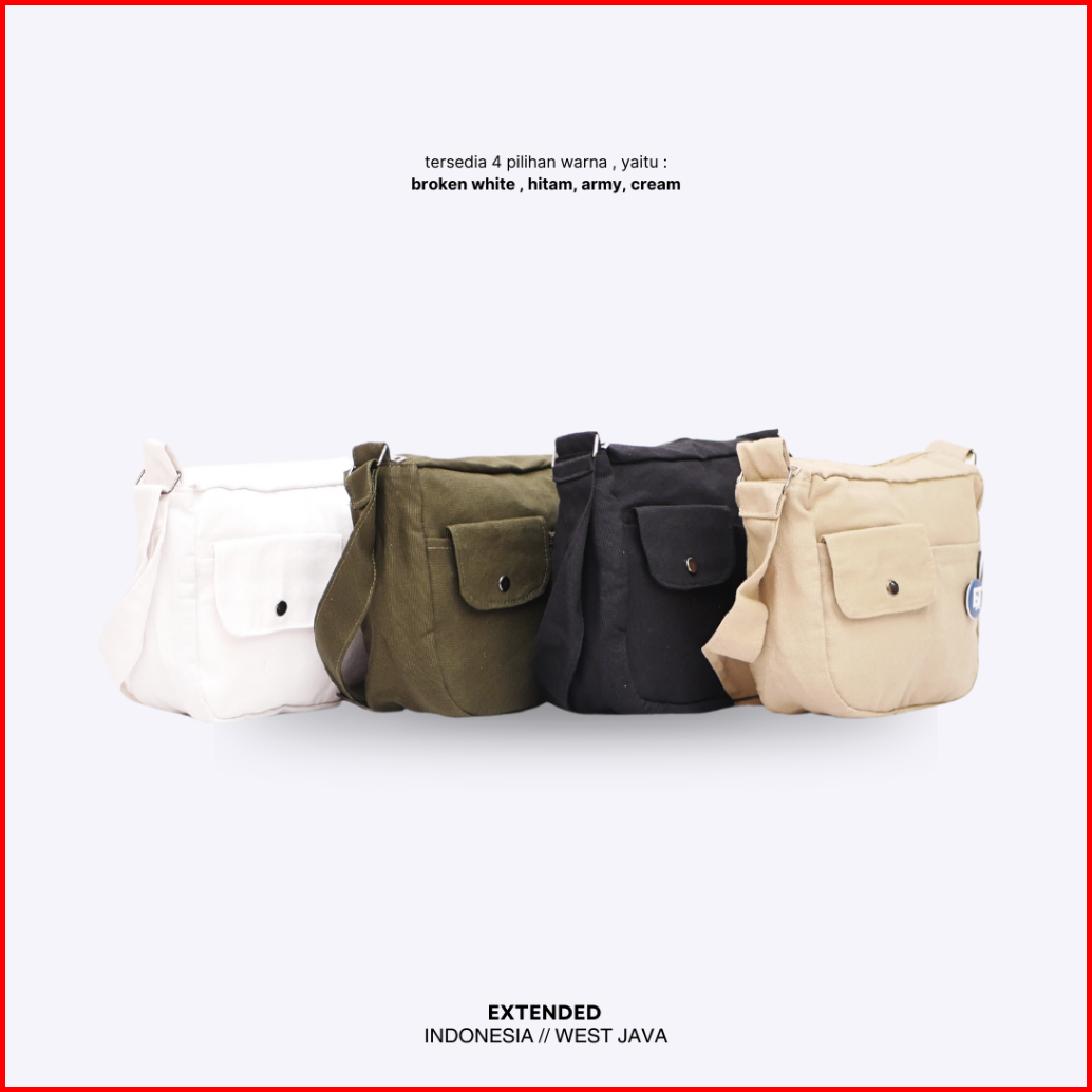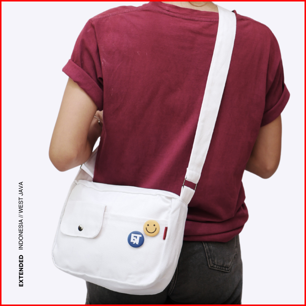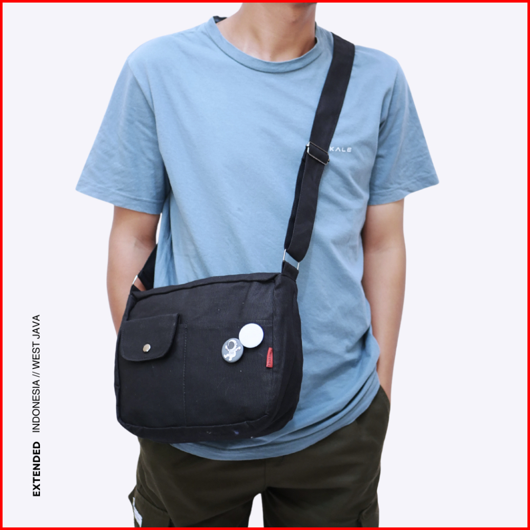 Slingbag Kanvas Wanita Pria Tas Selempang Korean Style Free Pin Bros Extended Kizuko