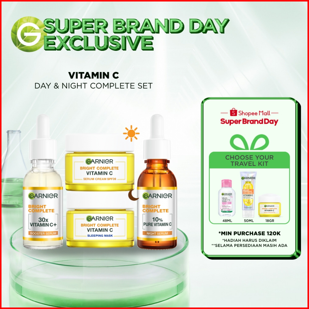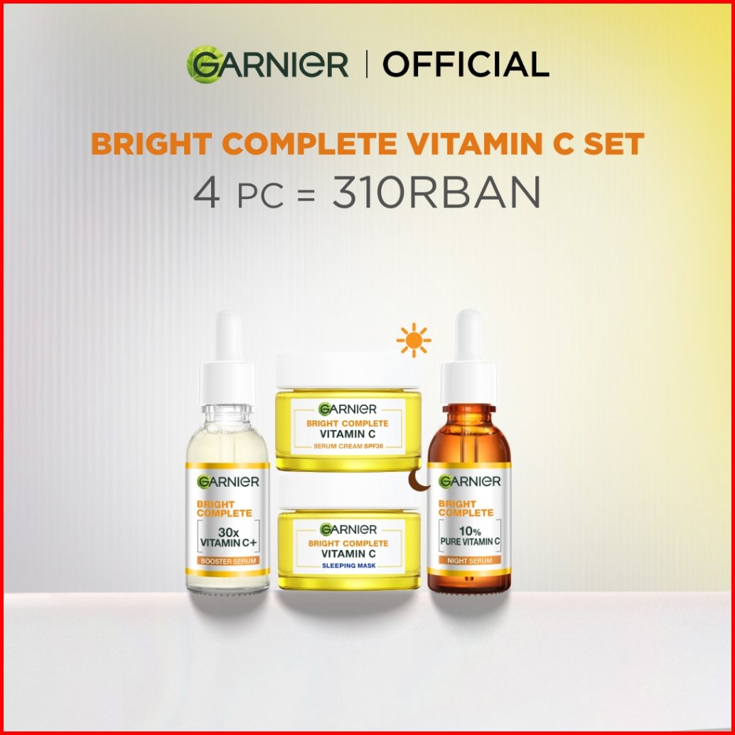 Garnier Paket Skincare 1 Set Lengkap Complete Kit Vitamin C Serum 30 Ml Overnight Serum 30ml Night Cream 50ml Day Cream