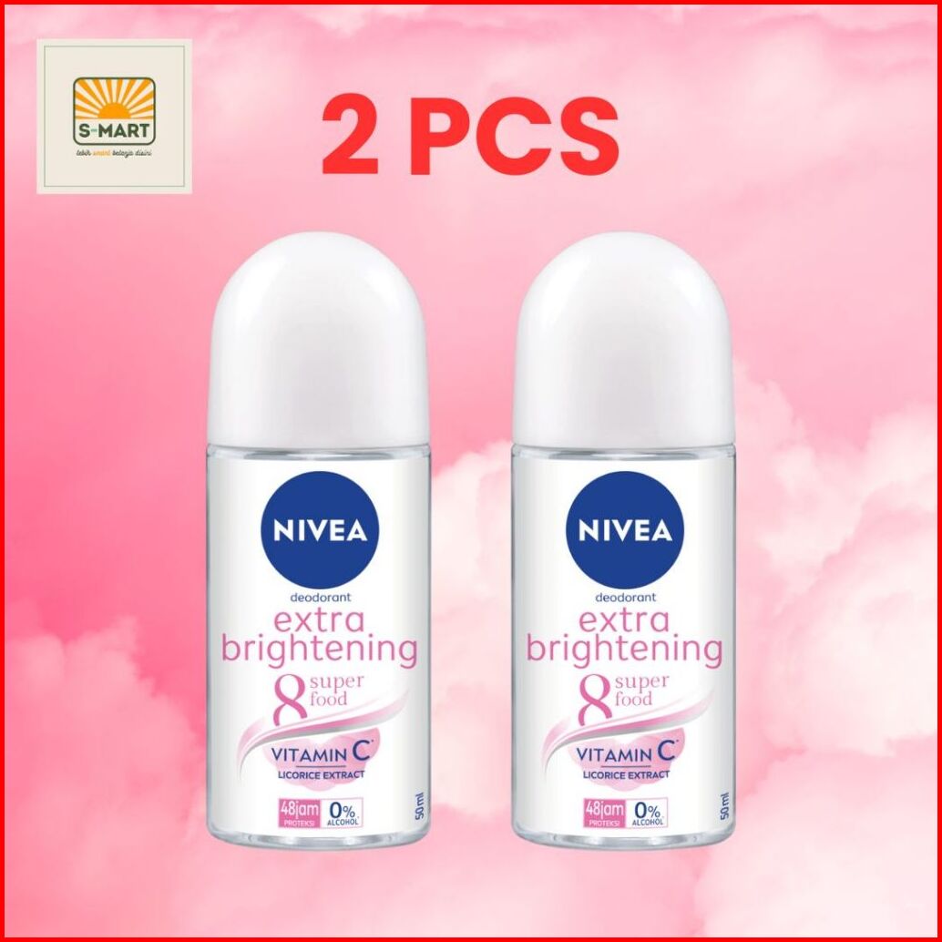 2 Pcs Nivea Deodorant Roll On Extra Brightening 50ml - Mencerahkan Menghaluskan Kulit Ketiak