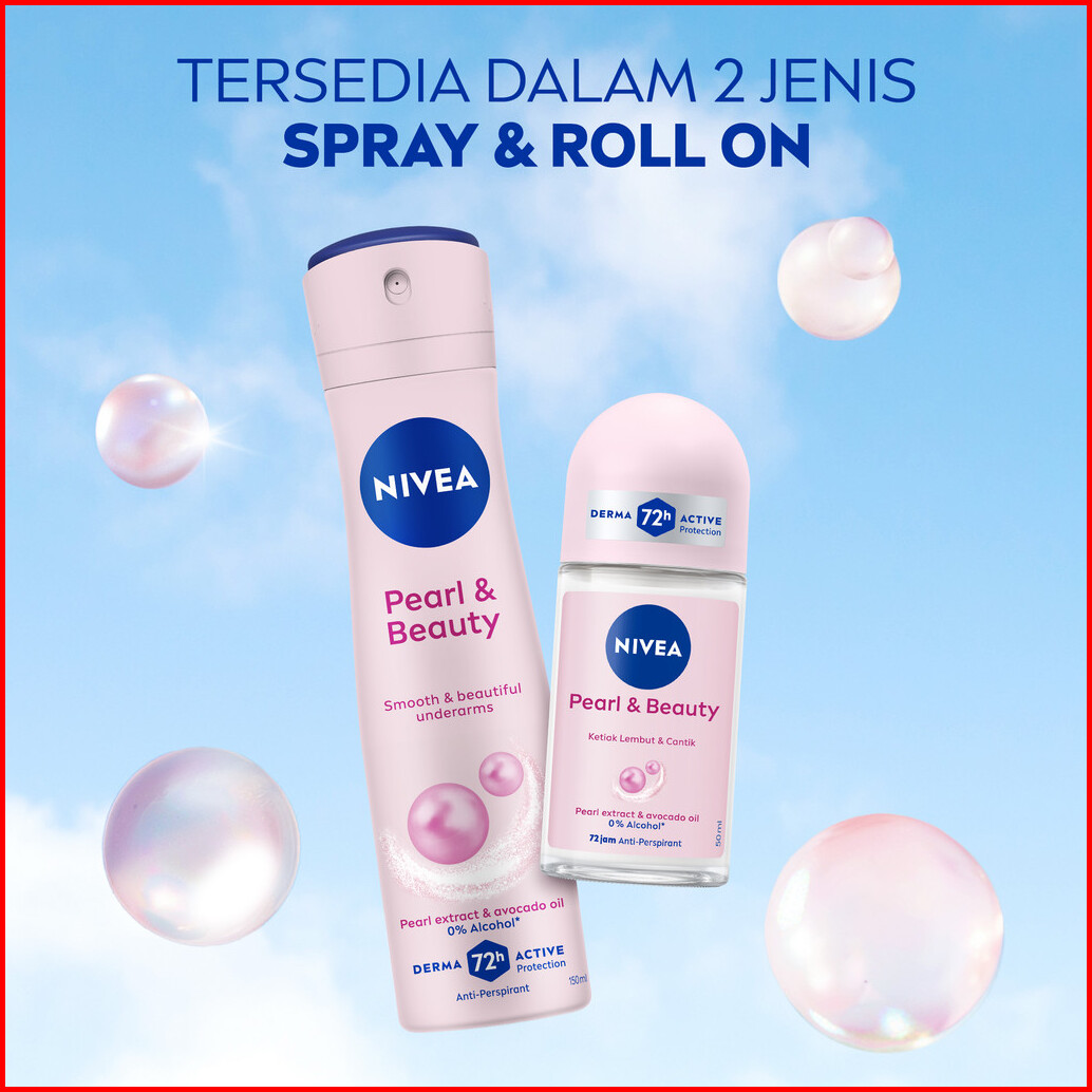 Nivea Deodorant Roll On Pearl Beauty 25ml - Deodoran Wanita Mencerahkan Brightening Glowing Kulit Ketiak Halus Tahan Ker