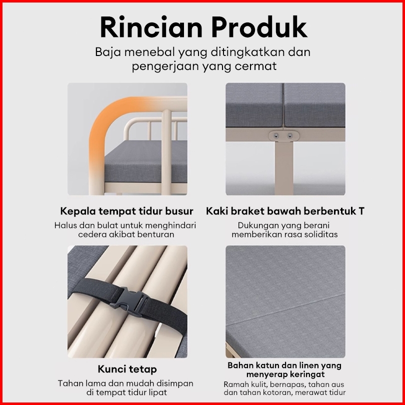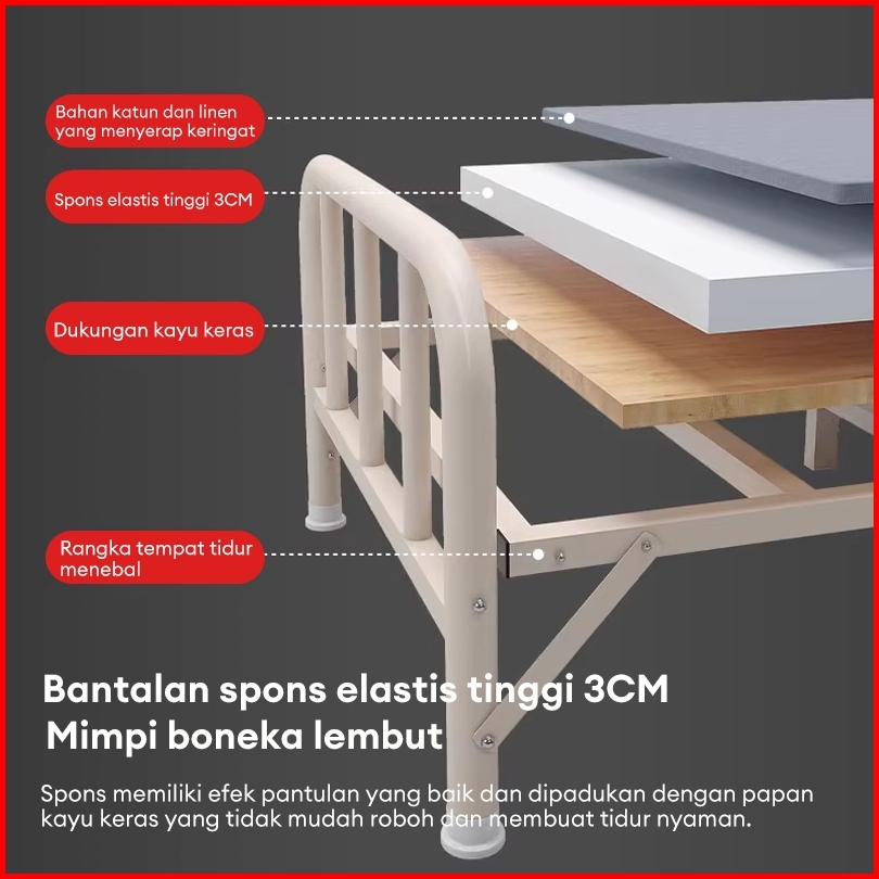 Ranjang Lipat Besi 190x120cm Tempat Tidur Lipat Portable Kasur Lipat Tebal 10 Cm Folding Bed Sudah Dirakit