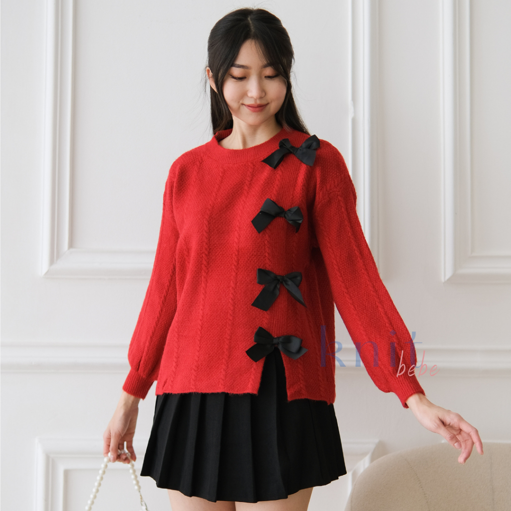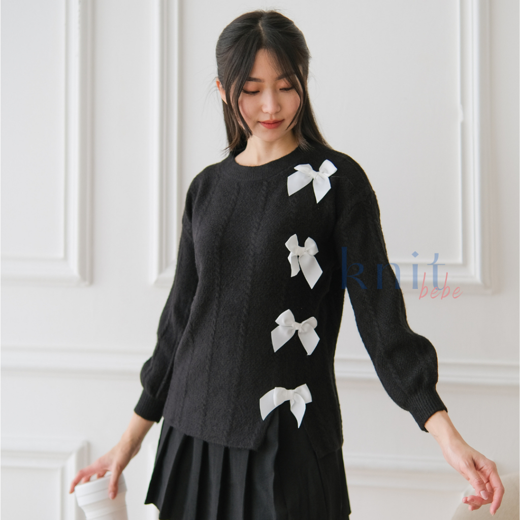 BAJU KEKINIAN WANITA JIYOUNG Atasan Sweater Cardigan Rajut Pita Ribbon Knit Top