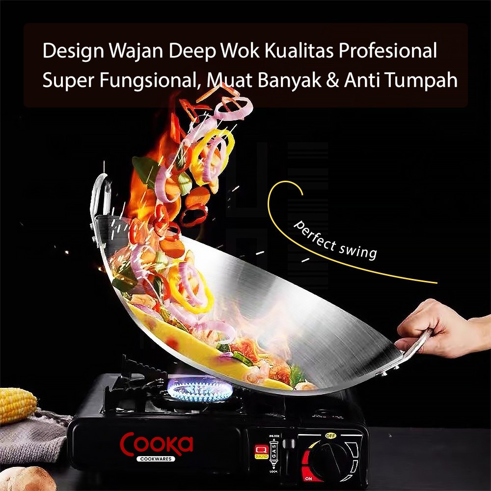 HOMIX 30-65CM Wajan Penggorengan Wajan Stainless Steel Besar Katel Anti Lengket Tebal Kuali Premium Dengan Pegangan Kual
