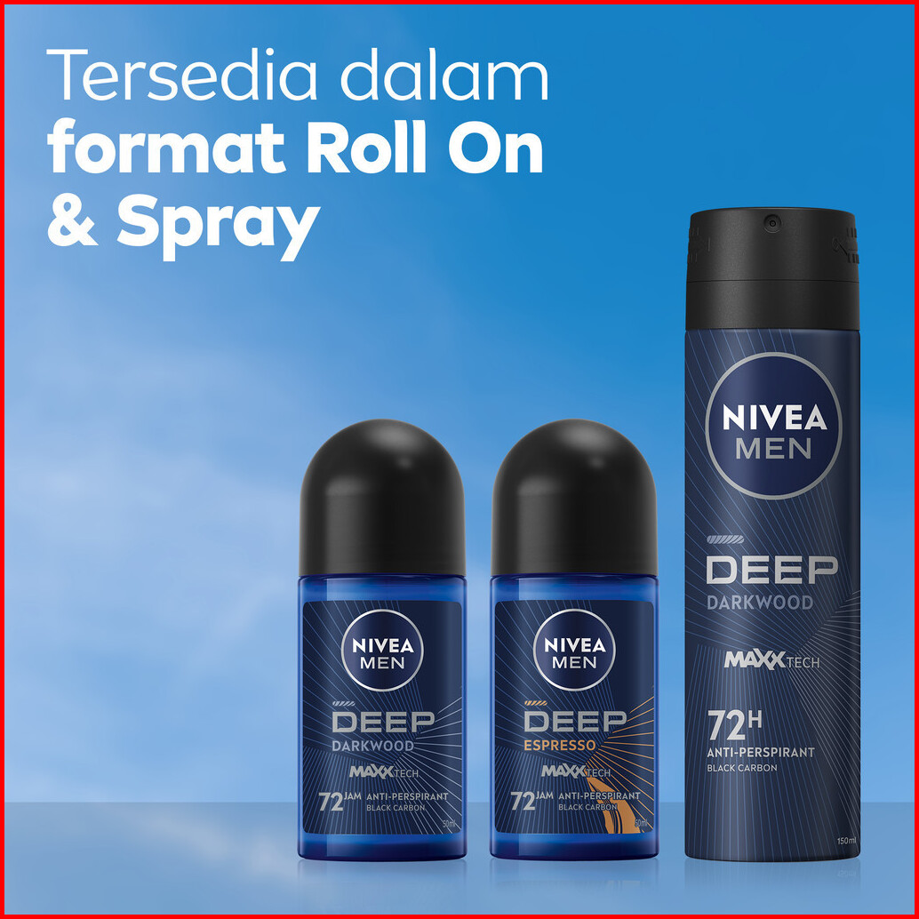 Paket Hemat Isi 3 Nivea Men Deodorant Roll On Deep Darkwood 50ml - Deodoran Pria Melawan Bakteri Keringat Bau Badan Deng