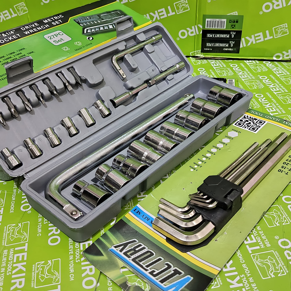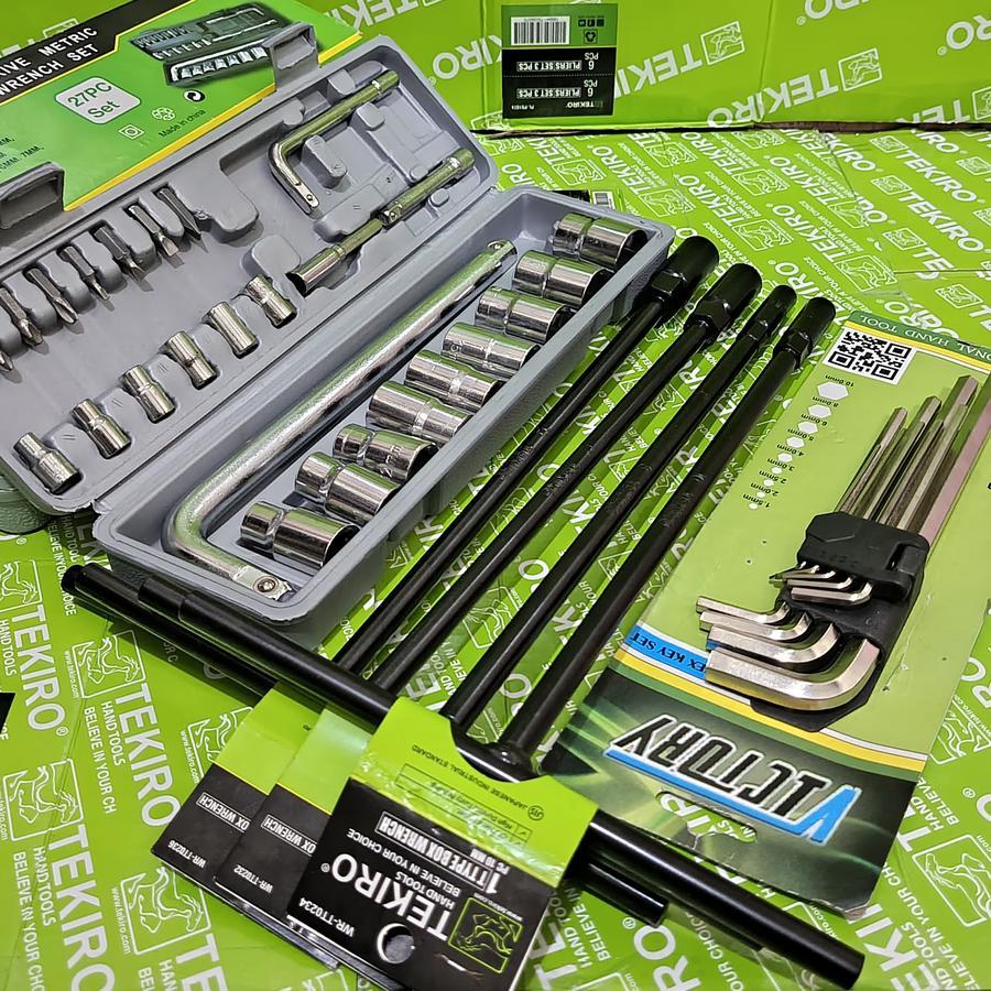 TEKIRO Kunci T 4pcs 8-10-12-14mm + Kunci Sok Shock 27pcs Victory + Kunci L Set 9pcs