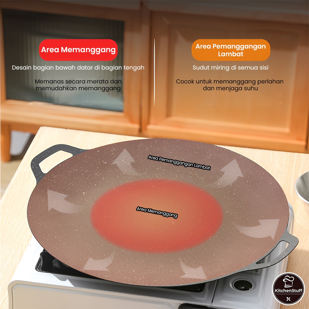 Wajan Panggangan Anti Lengket Bulat Diameter 34CM- Grill Pan Datar untuk BBQ, Daging, dan Sayuran
