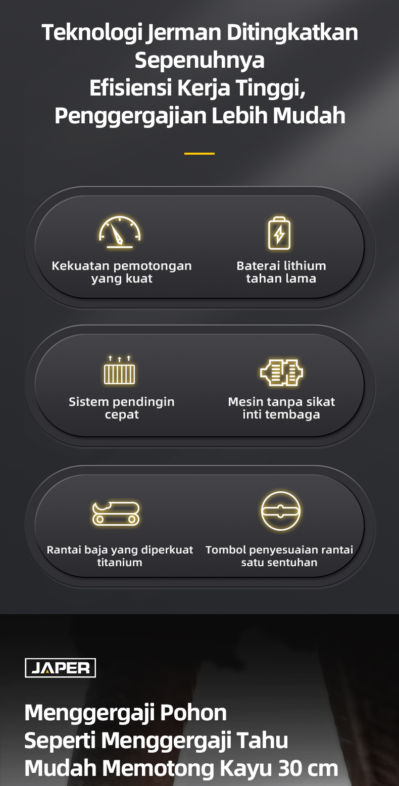 JAPER Mesin Chainsaw Cordless Gergaji Baterai Gergaji Rantai Elektrik Mini Gergaji Listrik