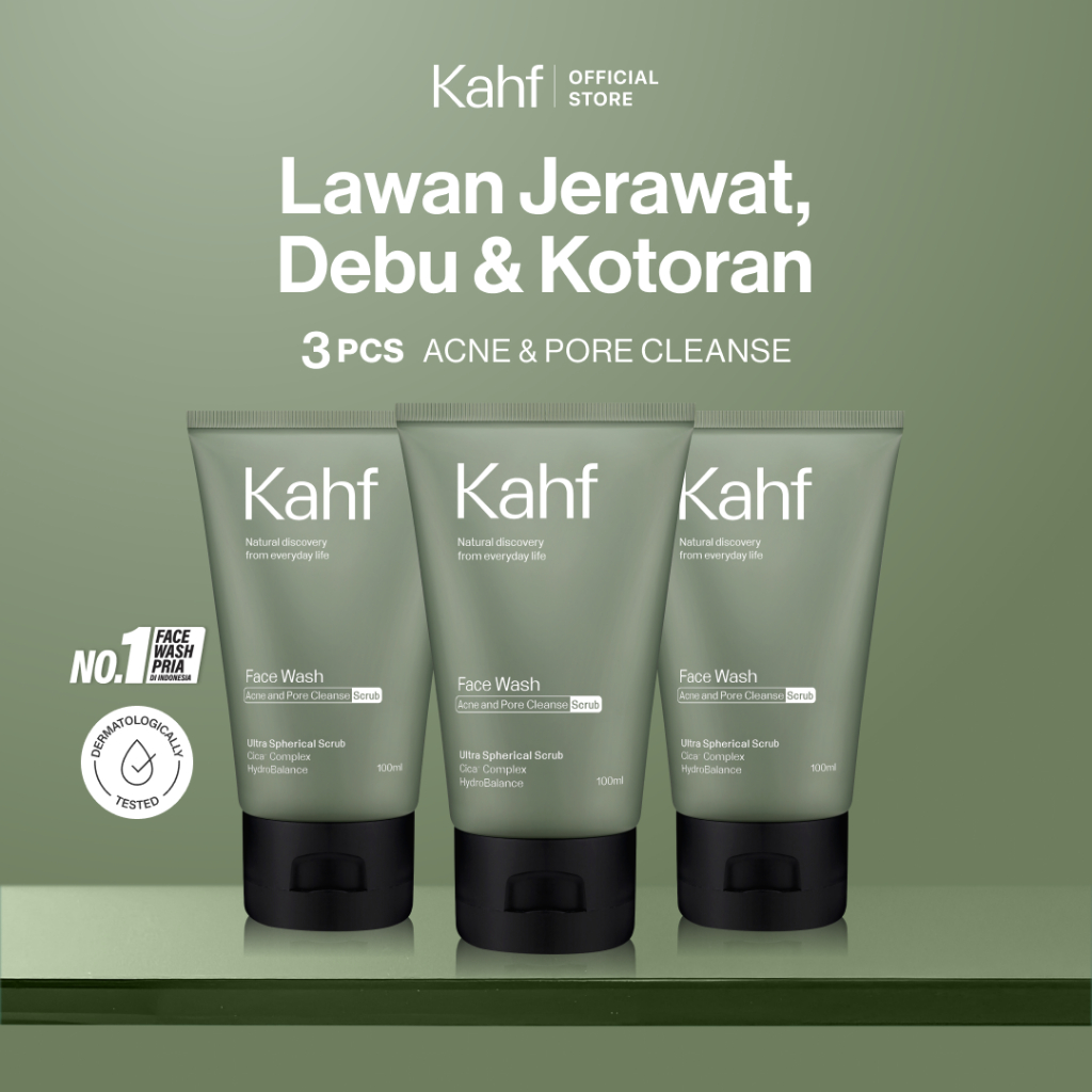 [KAHF BUNDLE 3IN1 PAKET FACIAL WASH - WAJAH GLOWING, CERAH, JERAWAT HILANG, BEBAS MINYAK, ANTI KUSAM] Triple Pack Face W