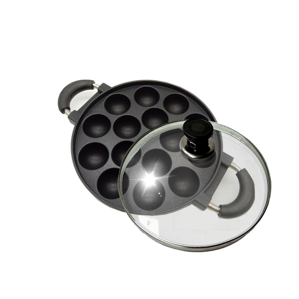 QME Cetakan Kue 15/19 Lubang Cekung Takoyaki Dengan Tutup Kac/Cetakan Takoyaki Perkedel Mini Anti Lengket