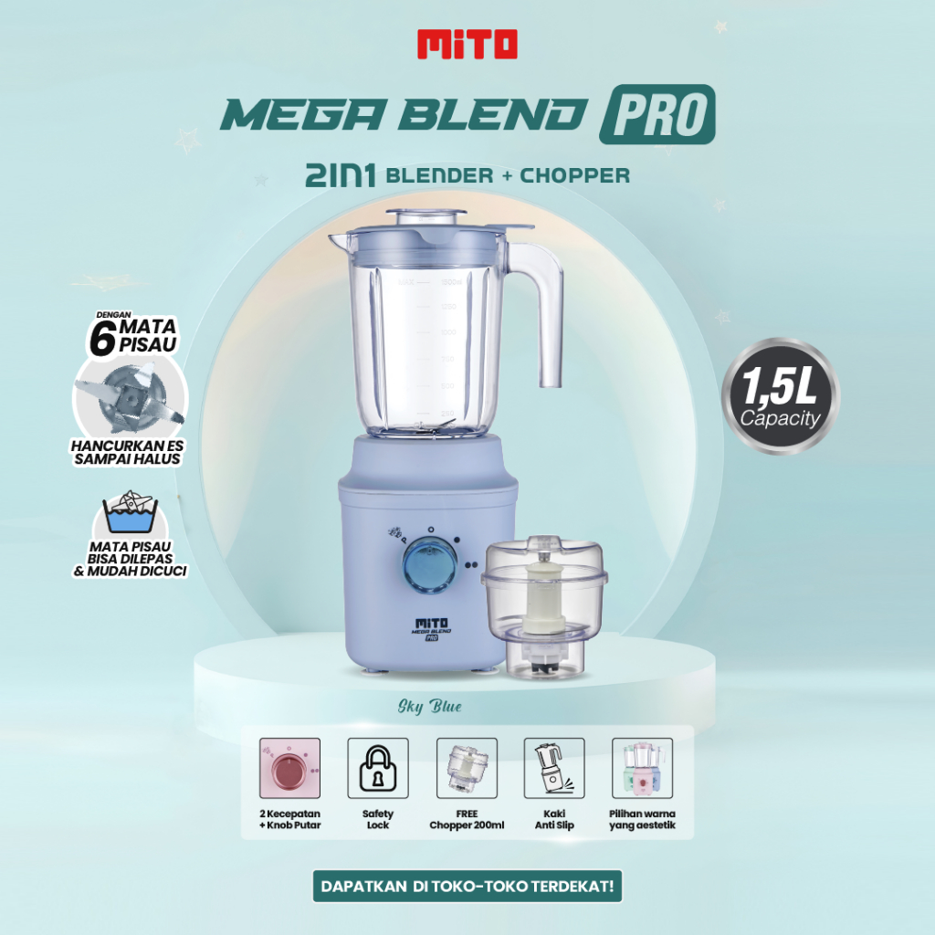 BLENDER SET MITO MEGA PRO BL300 - 1,5L JAR 2 TINGKAT KECEPATAN + PULSE + 6 MATA PISAU DENGAN ICE CRUSHER
