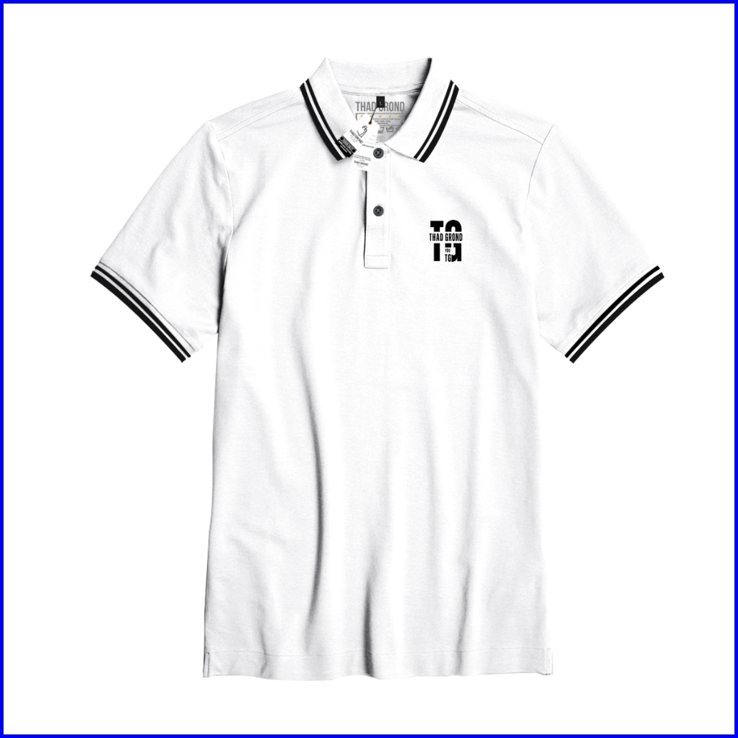 Thad Grond - Polo T-shirt Lis Kerah Polo Tg Text Hitam 02 Polo Seragam Pria Wanita Baju