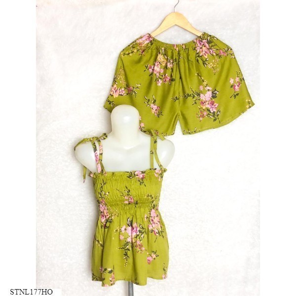 Setelan Atasan Tangtop dan Celana Pendek Wanita Motif dan Polos
