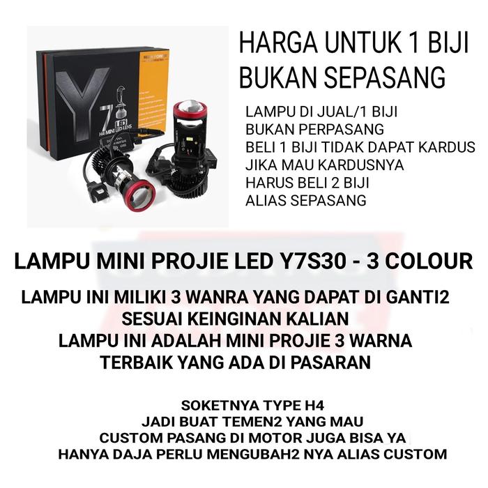 LAMPU LED MINI PROJECTOR PROJIE H4 MOBIL MOTOR Y7S 3 WARNA