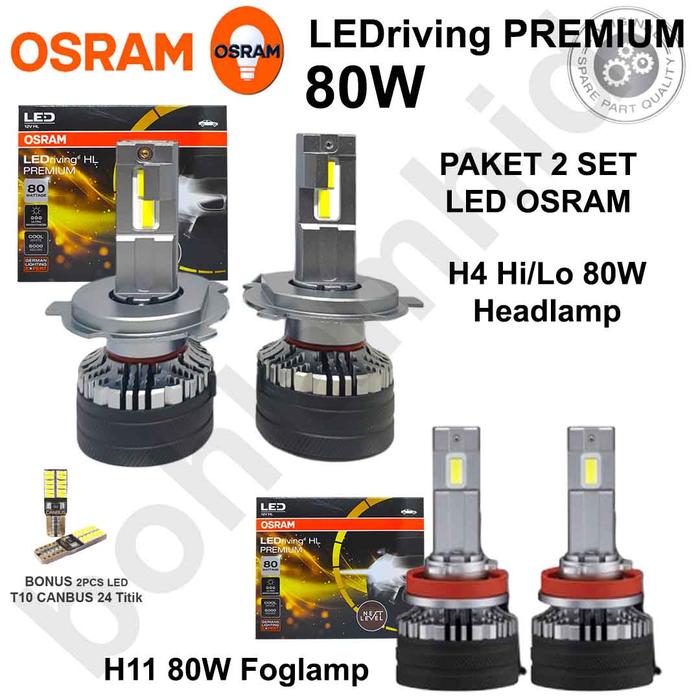 Paket 2 Set LED Mobilio Osram Premium 80W Headlamp H4 + Foglamp H11 Lampu Mobil Garansi 1 Tahun