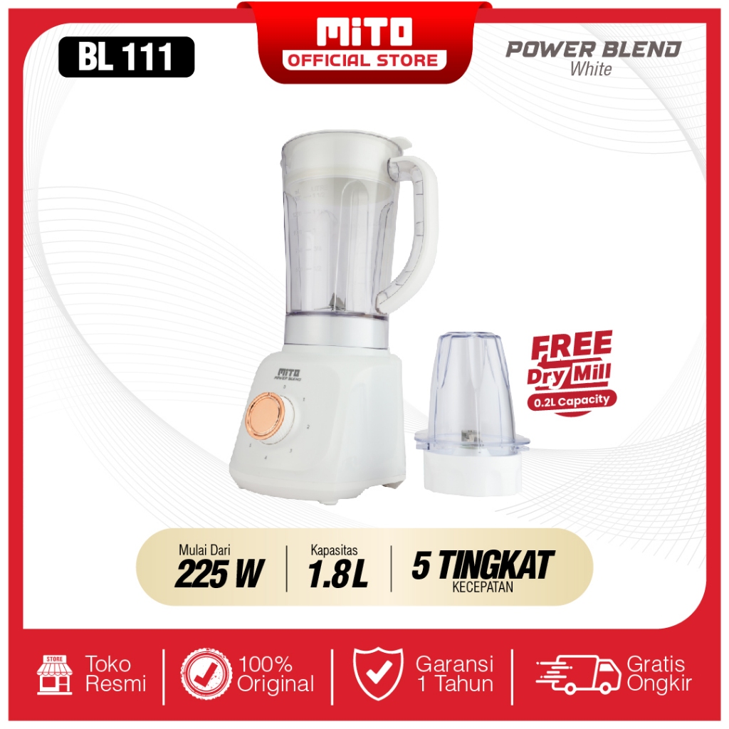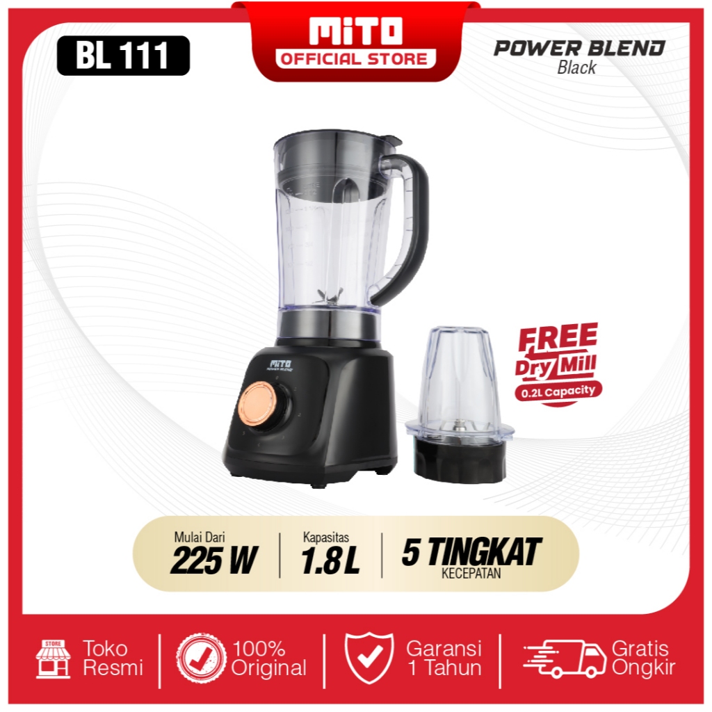 BLENDER SET MITO BL111 1.8 LITER, DENGAN PELINDUNG SUHU, LOW WATT, 5 KONTROL KECEPATAN DAN FUNGSI PULSE DAN DRY MILL