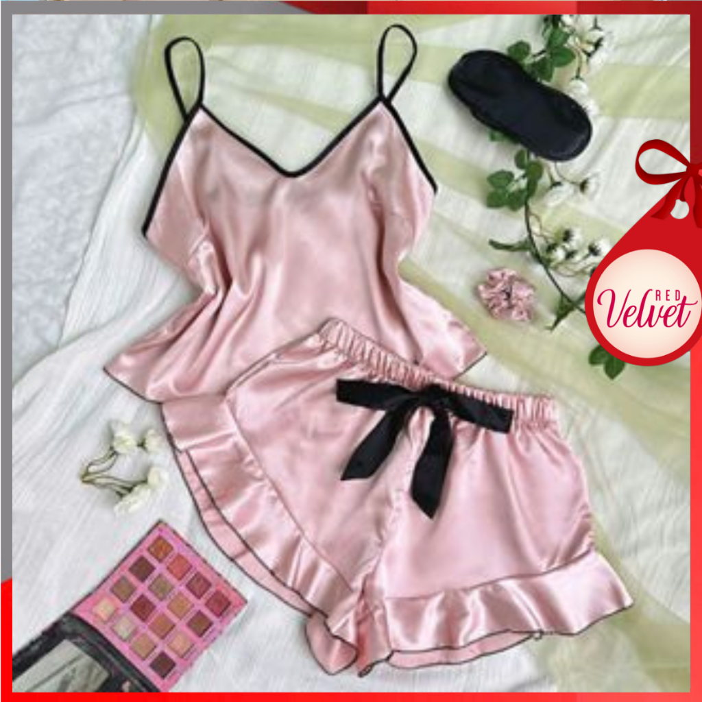 RV® Baju Tidur Wanita Set Celana Pendek Wanita + Tank Top Gari polos Simpel Kekinan Bahan Katun Ukuran One Size 1375