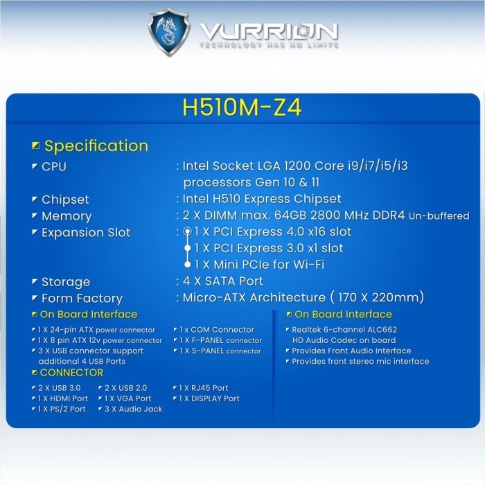 MOTHERBOARD VURRION DURAVEL H510M-Z4 (Intel H510, LGA 1200, DDR4)