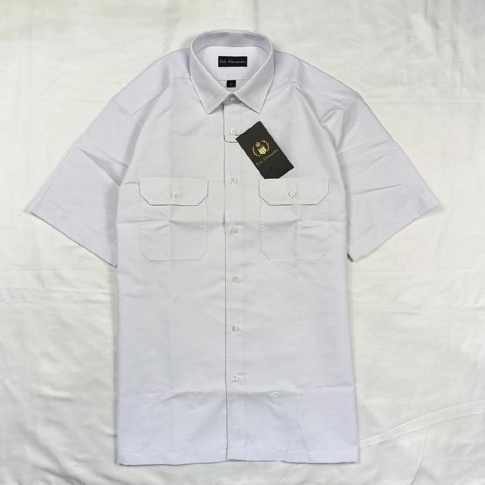 Kemeja Pria Polo Alessandro Ex Darren Pendek Benang Tiga Reguler Bahan Oxford Putih Bersih Formal