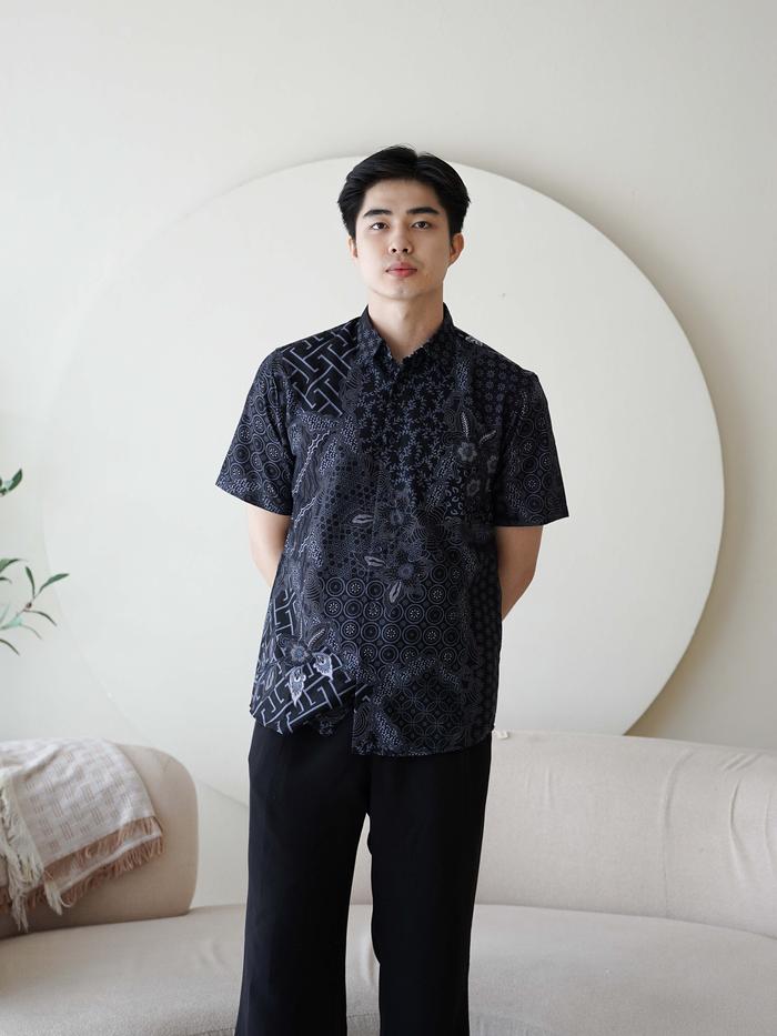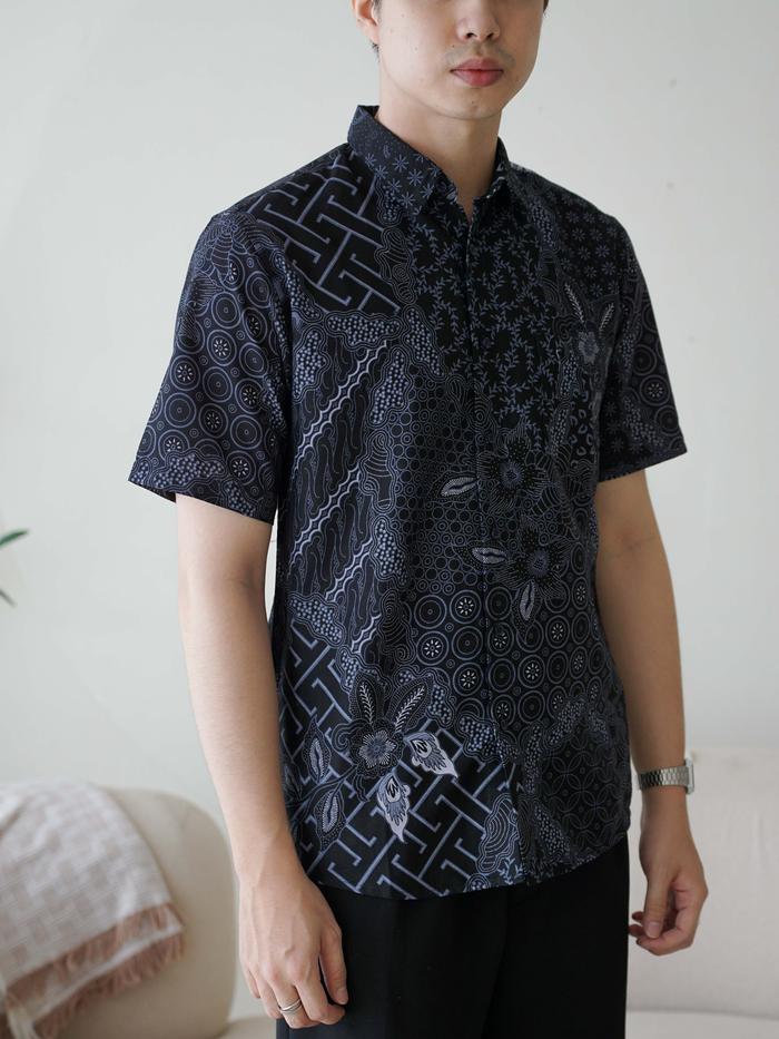 PAYDAY PAYDAY - JAYASHREE - Batik Slimfit Mada Black Kemeja Batik Pria Lengan Pendek - Baju Kerah