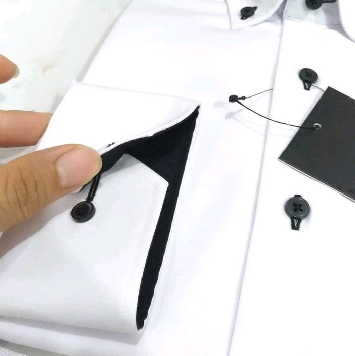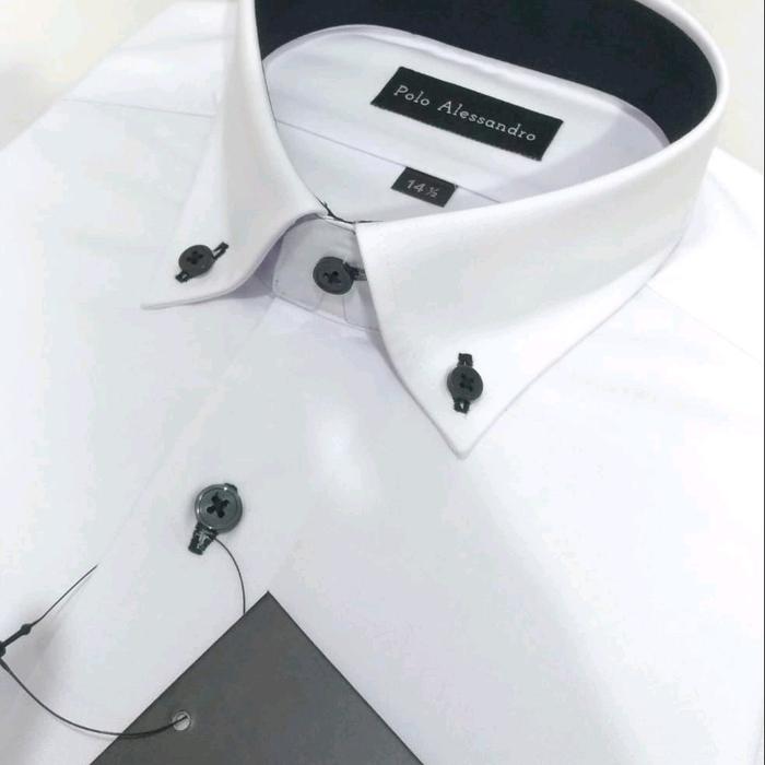 Kemeja Pria Polo Alessandro Putih Panjang SlimFit Kombinasi Kerah Dalam Hitam