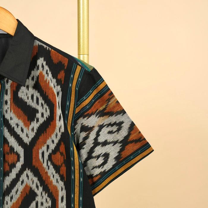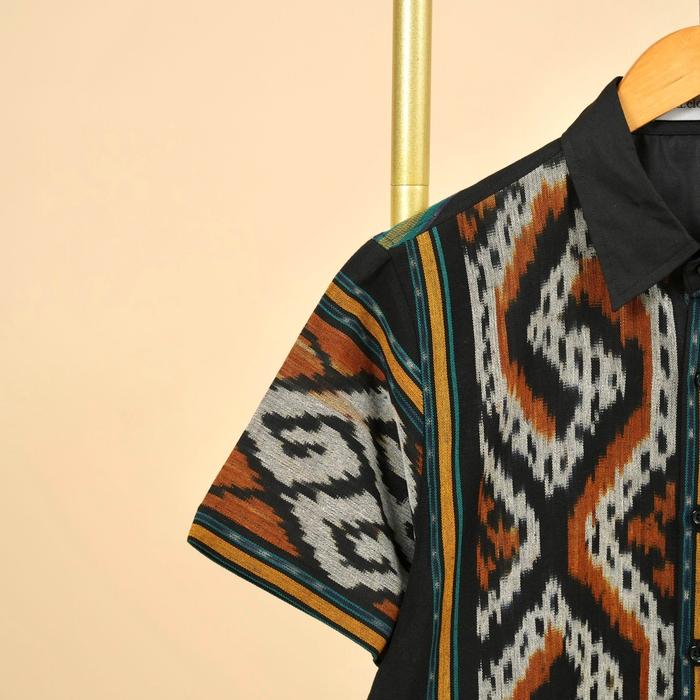 Kemeja Tenun Pria M0842 Hitam Tangan Pendek