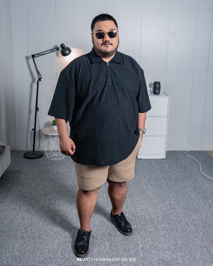 XLUNO Zipper Polo Black Baju Polo Pria Jumbo Knit Big Size Lengan Pendek