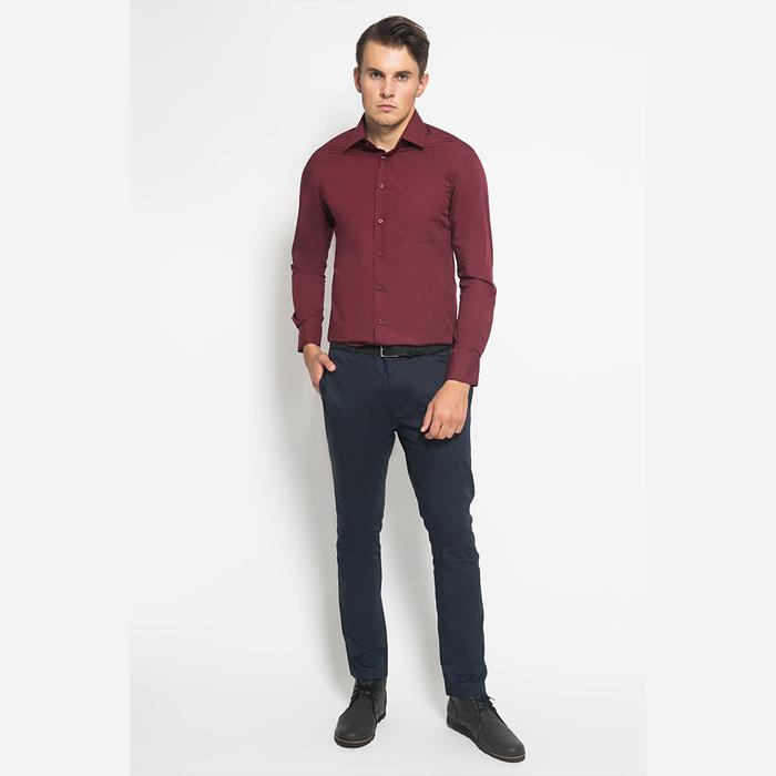 Alisan Kemeja Lengan Panjang Polos Slimfit Maroon PLSSFLSMaroon
