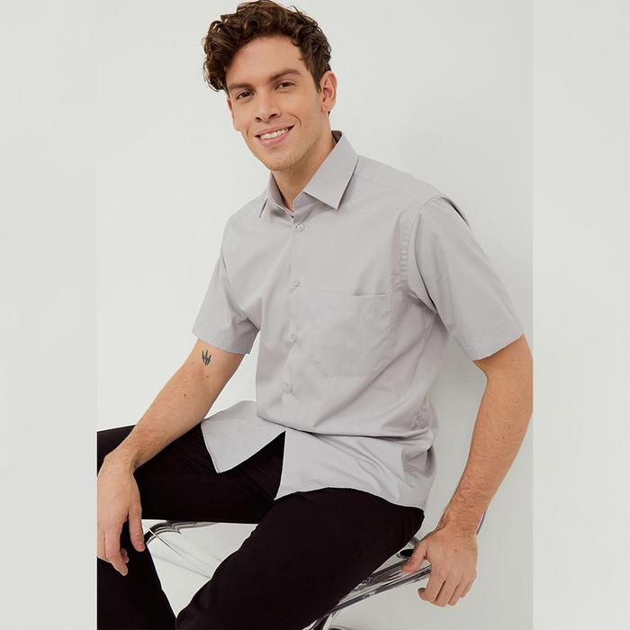 Alisan Kemeja Lengan Pendek Polos Slimfit Abu-abu PLSSFSSAbu1