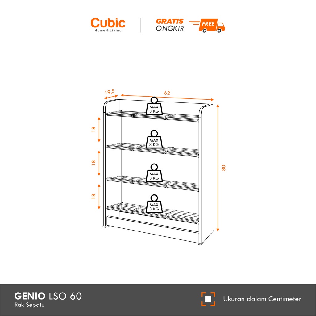 Cubic Rak Sepatu Modern Minimalis / Rak Sepatu 4 Tingkat / GENIO LSO 60 - Motif Kayu