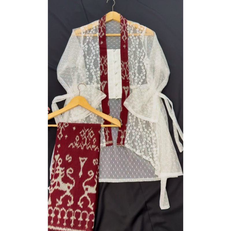 [Star] COUPLE TENUN KEBAYA WIDURI WHITE MARON NEW baju kondangan tenun pria dan wanita