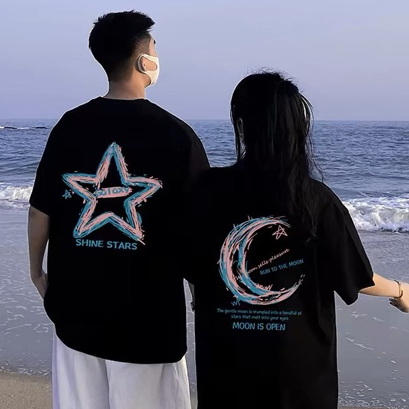 [Star] Baju couple korean style pasangan Ibaju kaos couple pasanganIPola corat-coret bintang bulan