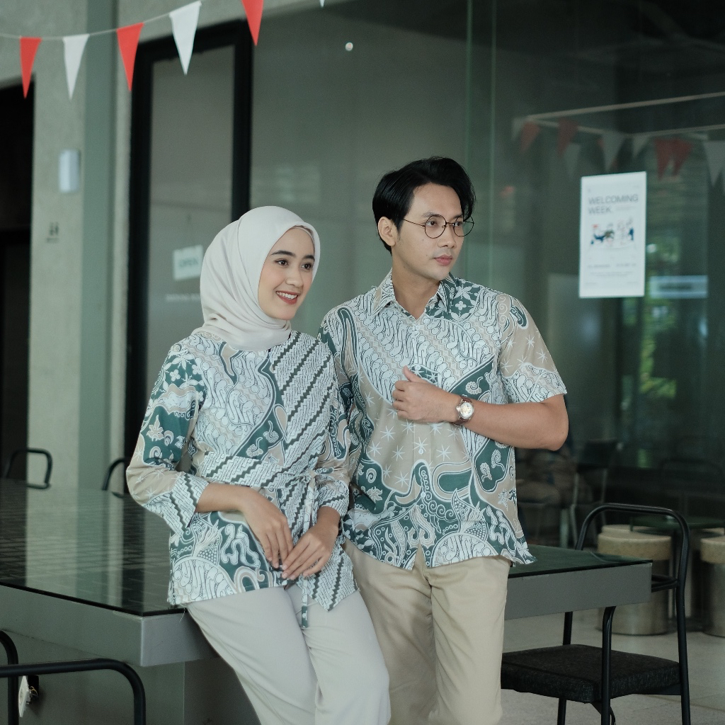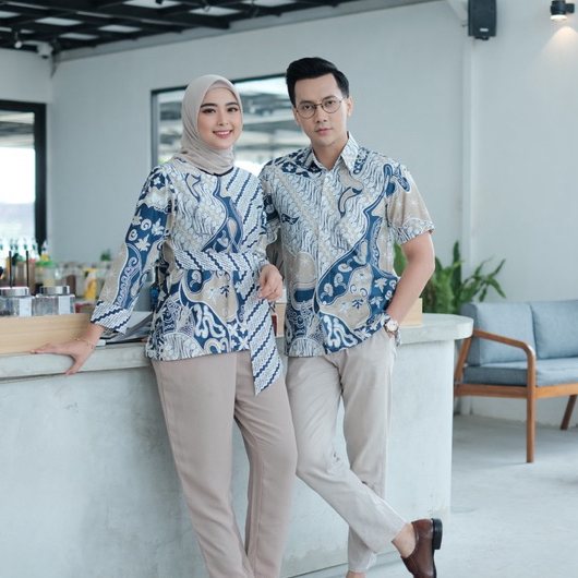 [Star] BRAWEE Baju Batik Couple Pria Wanita Blus Batik Couple Kerja Kejora Biru
