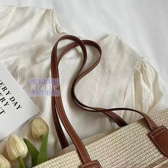 Tas Wanita Anyaman Jerami Import Bali Tas Bahu Rajut Tenun Kasual Stylish - A