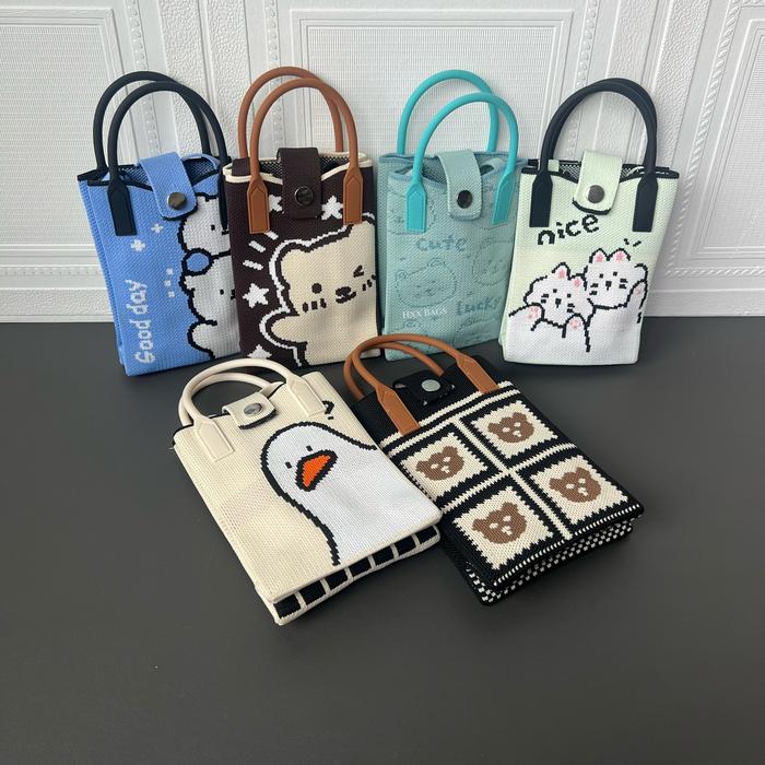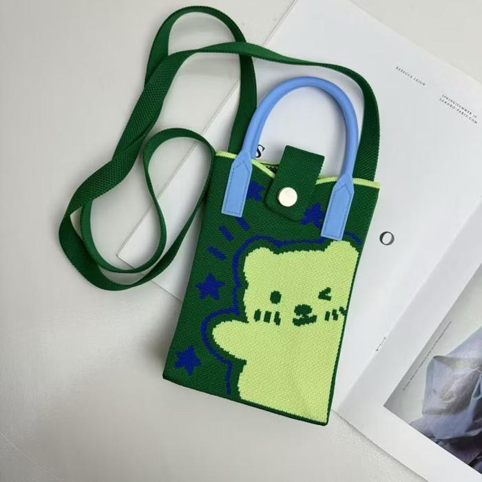 TAS HP RAJUT SELEMPANG SLINGBAG KNITTED MOTIF LUCU ELEGANT SIMPLE - BIRU BEAR