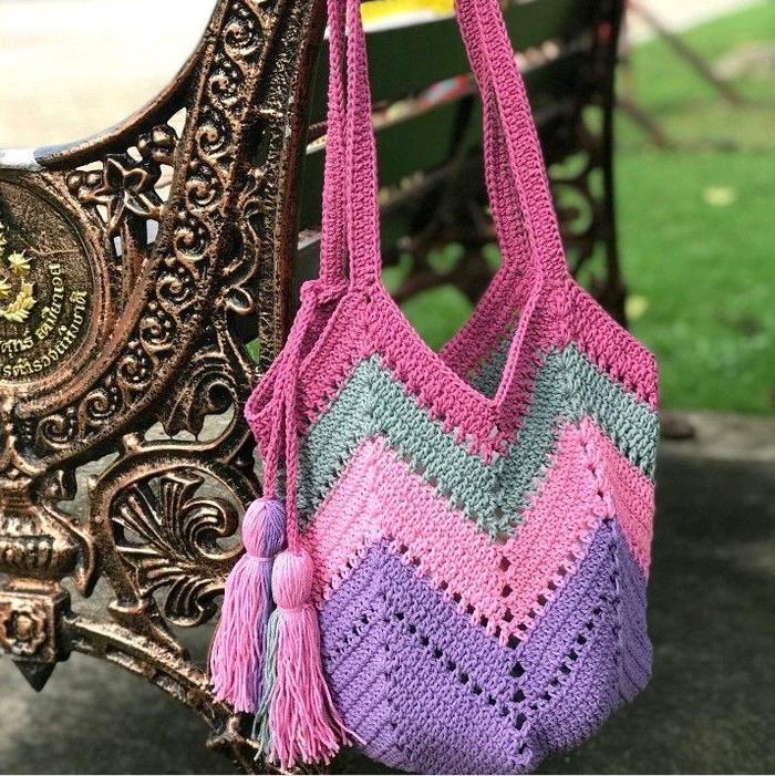 aneka tas rajut tote bag tas rajut Totebag Wanita - pink