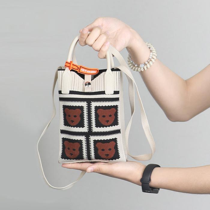 Knitted Mini Sling Bag Rajut Tas HP Make Up Travelling Selempang Wanita Korean KEPALA BER- - T225 - Hitam