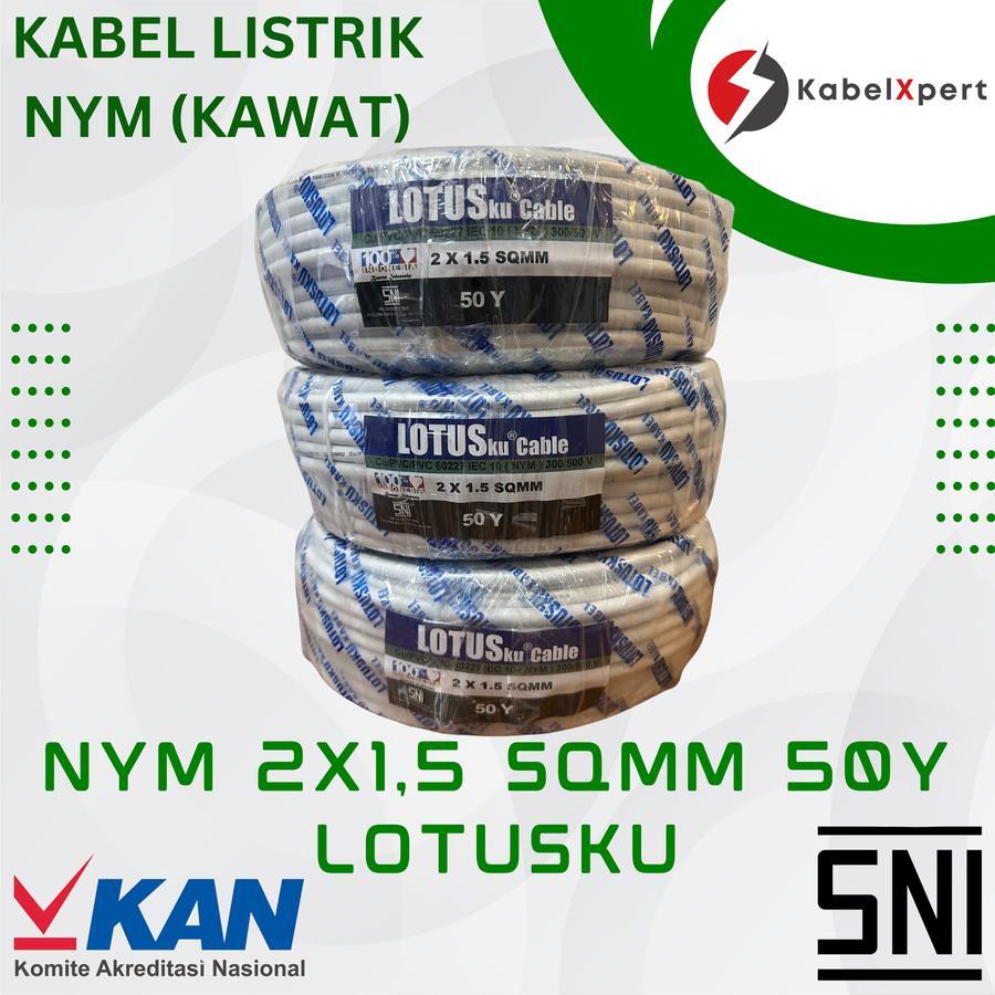 [Terlaris !!!] Kabel LOTUSku NYM 2x1,5 50Y 2x1.5mm 45 Meter Putih Tunggal Kawat Full Tembaga