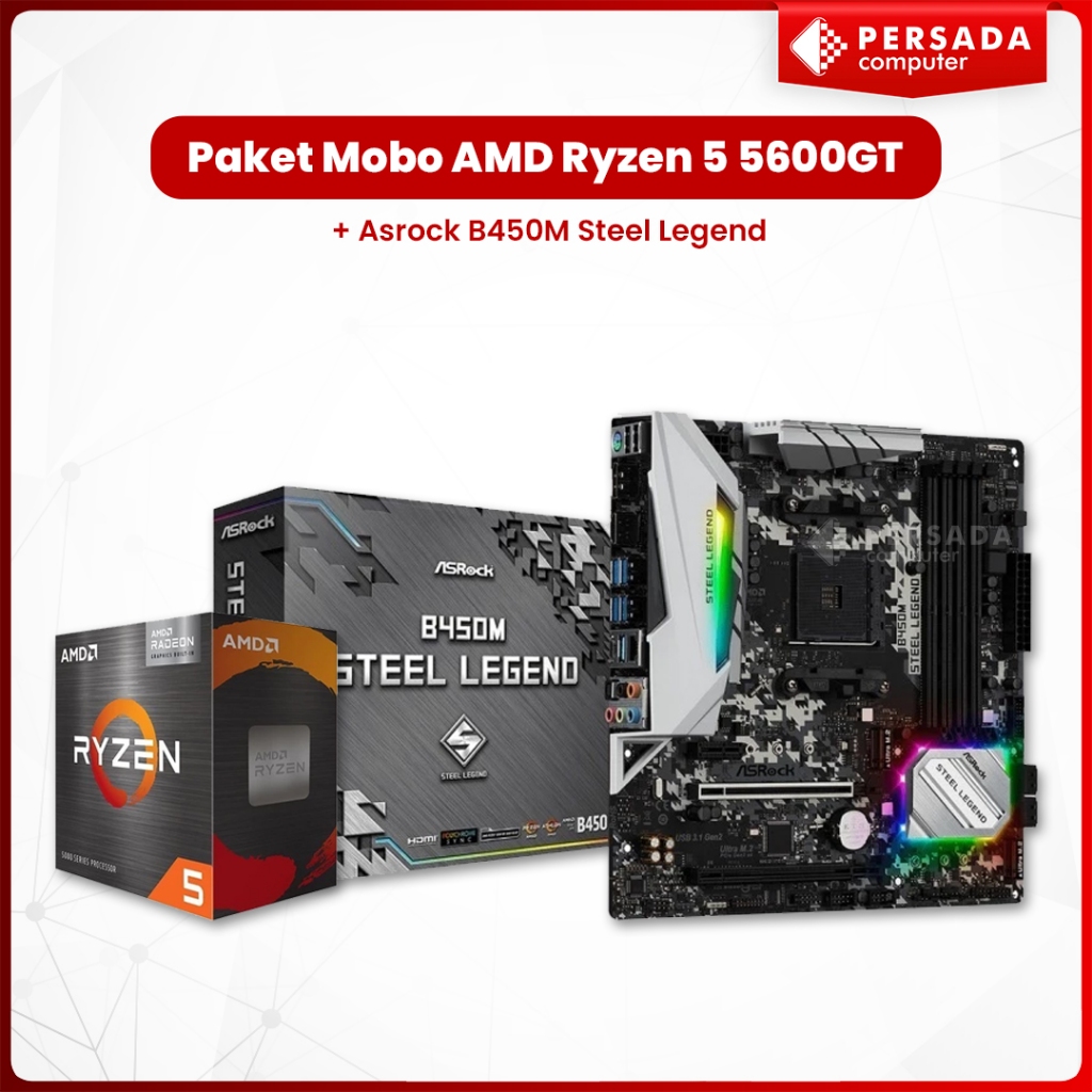 Paket Mobo AMD Ryzen 5 5600GT + MSI A520M-A Pro / Asrock A520M-HVS / Asrock B450M-HDV / Asrock B450M Steel Legend