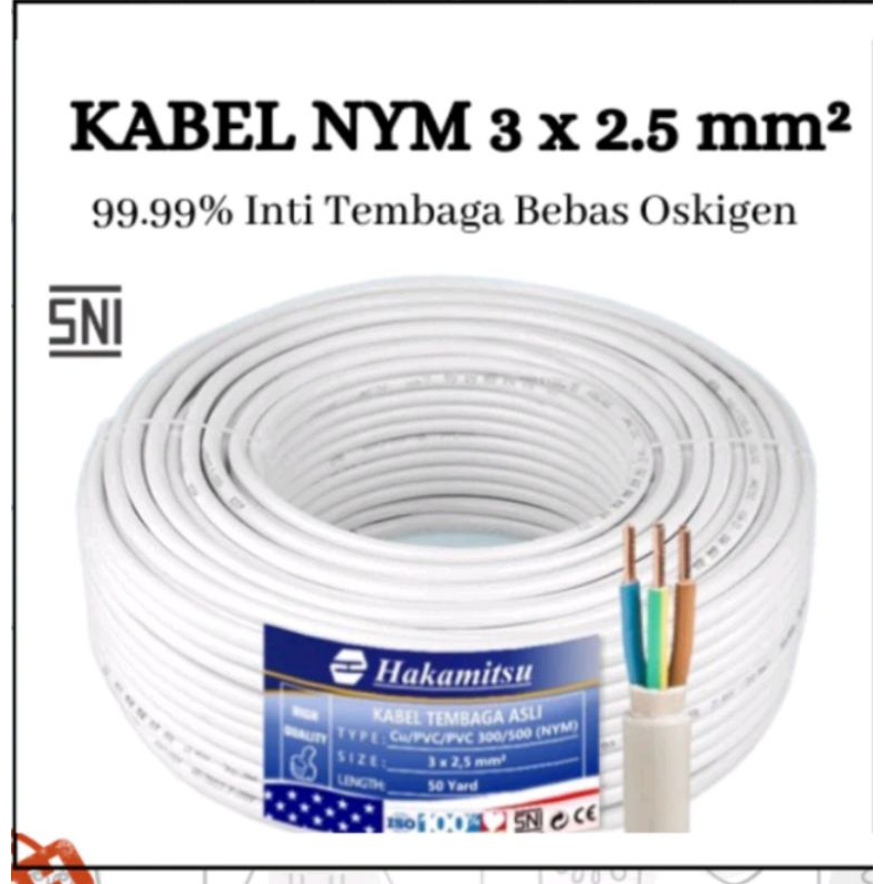 HAKAMITSU - Kabel SNI NYM 3x2.5 50 Yard / Kabel Tembaga SNI 3x2.5