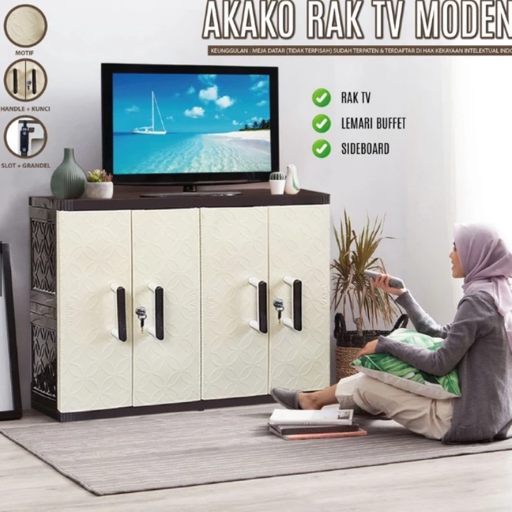MEJA TV PLASTIK MEJA TV MINIMALIS MODERN AKAKO MEJA TV MINIMALIS MODERN RAK BUFET KUAT DAN KOKOH PLASTIK FULL KUNCI