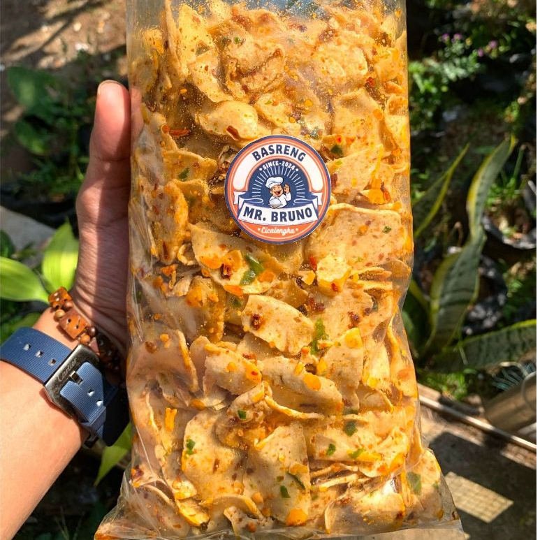 Keripik Basreng Pedas Chili Oil Daun Jeruk Taburan Kacang 500gram
