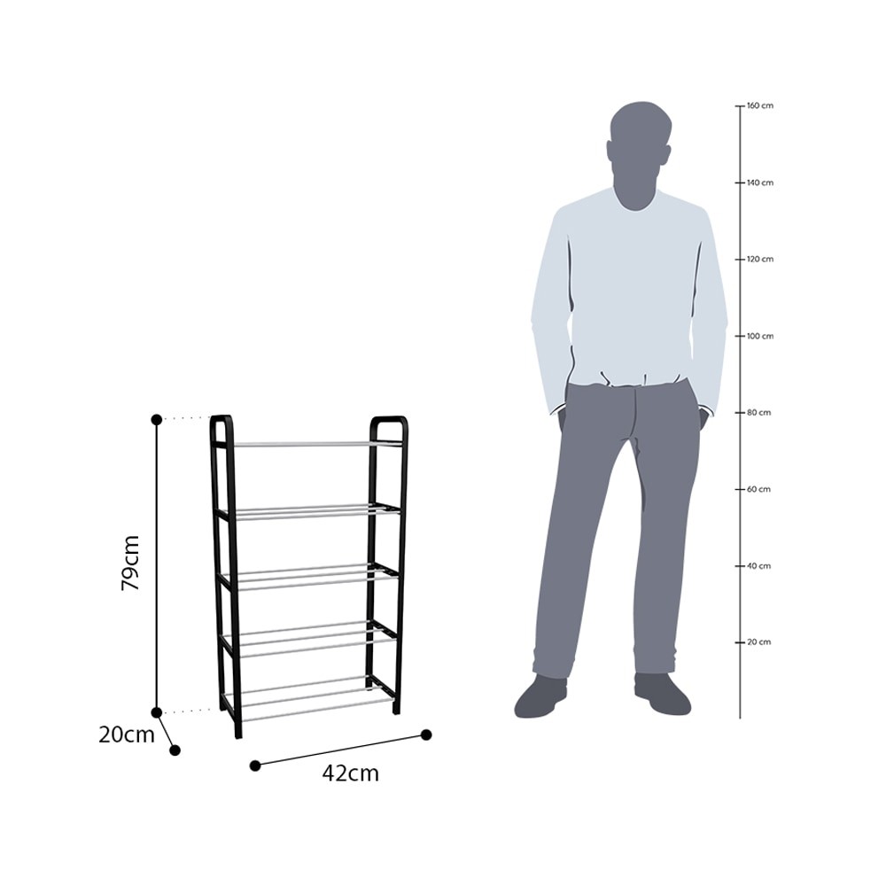 Informa 42X20X79 Cm Rak Sepatu 5 Tingkat - Hitam Shoe Rack Organizer Sandal Sepatu Kabinet Alas Kaki Tempat Penyimpanan