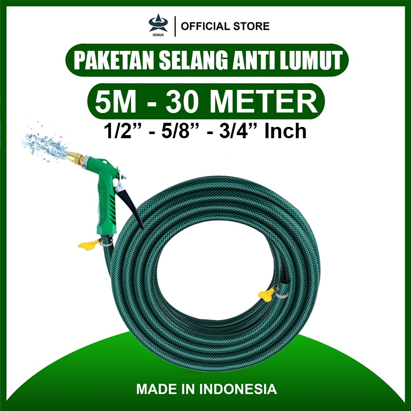 Gemuk Selang Air Cuci Motor 5 - 30 Meter 1/2 5/8 3/4 Inch Sepaket Semprotan Air Watergun Jet Spray Dengan Selang Benang