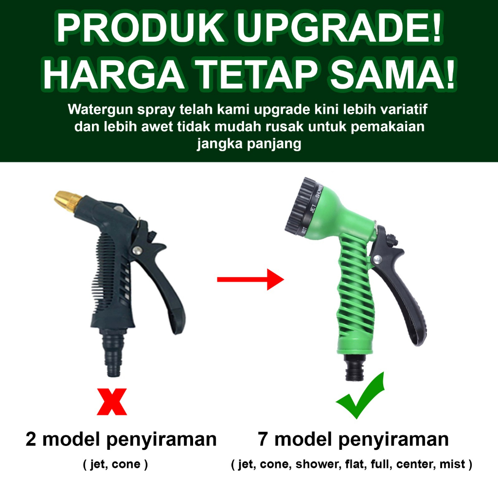 Gemuk Selang Air Cuci Motor 10 Meter - 30 Meter Dengan Semprotan Air 7 Mode Siram Selang Benang Anti Lumut Alat Siram Ta