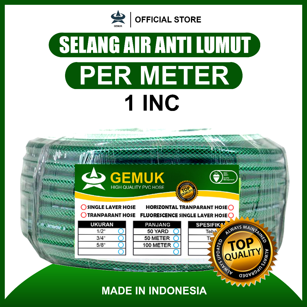 Gemuk Selang Air 1 Inch Permeter Selang Anti Lumut Serat Benang Hijau Siram Tanaman Selang Cuci Motor Mobil