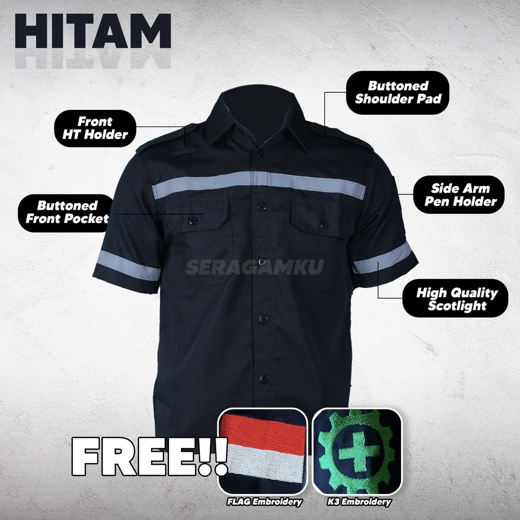 Wearpack Safety Hitam Atasan Kemeja Pendek Baju Kerja Murah Seragamku