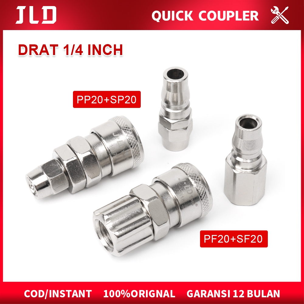 Jld Quick Coupler 1/4Inch Nepel Sambungan Selang Angin Kompresor Female+Male Psp20/Psf20