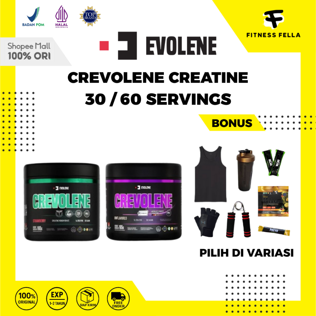 Evolene Crevolene Creatine Creapure / Monohydrate (30 Servings/60 Servings) Suplemen Fitness Creatin