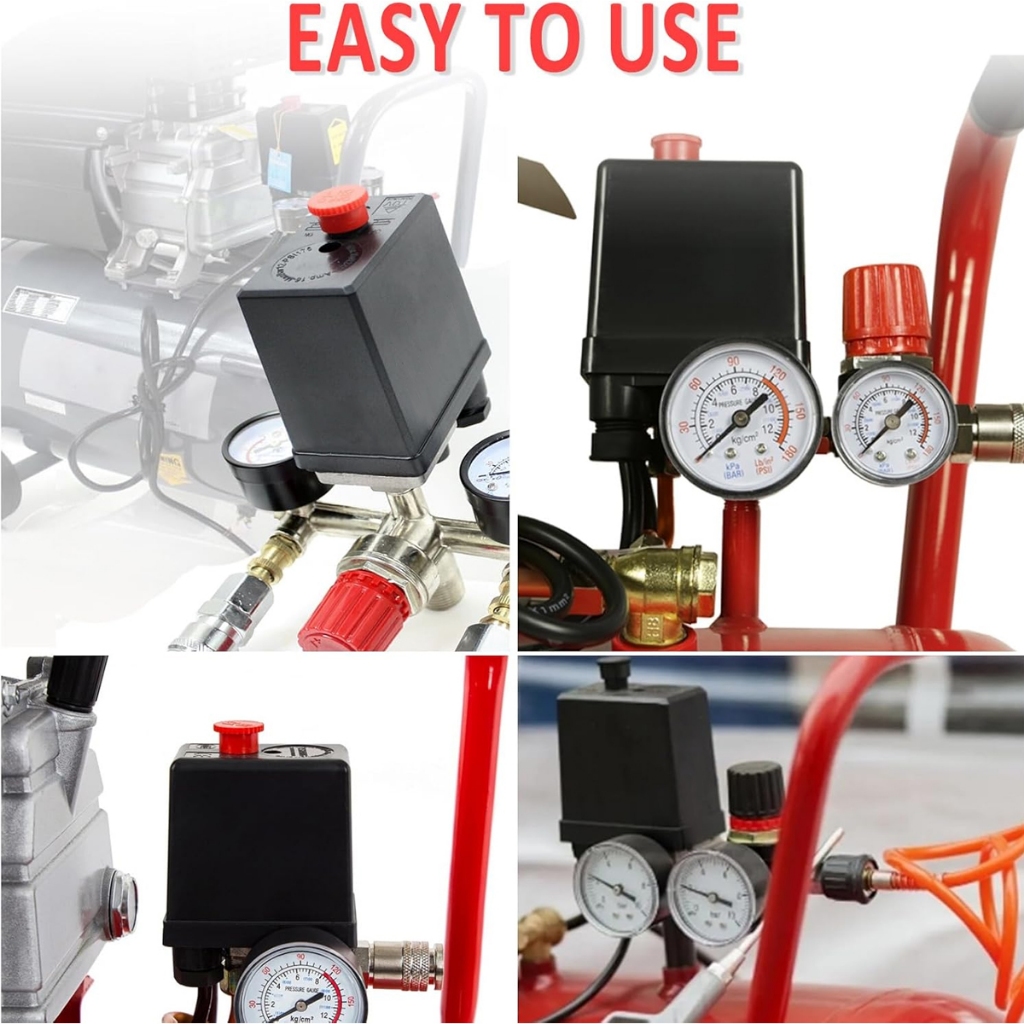 Jld Kompresor Angin Otomatis 4 Way Cabang Lubang Automatic Pressure Switch Drat 1/4"
