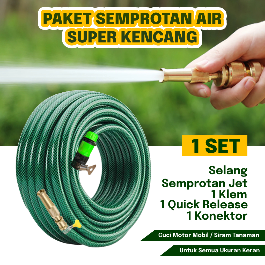 Gemuk Selang Air Cuci Motor 1/2 Inch 15 Meter Sepaket Selang Air Benang Anti Lumut Dengan Semprotan Air Nozzle Kuningan